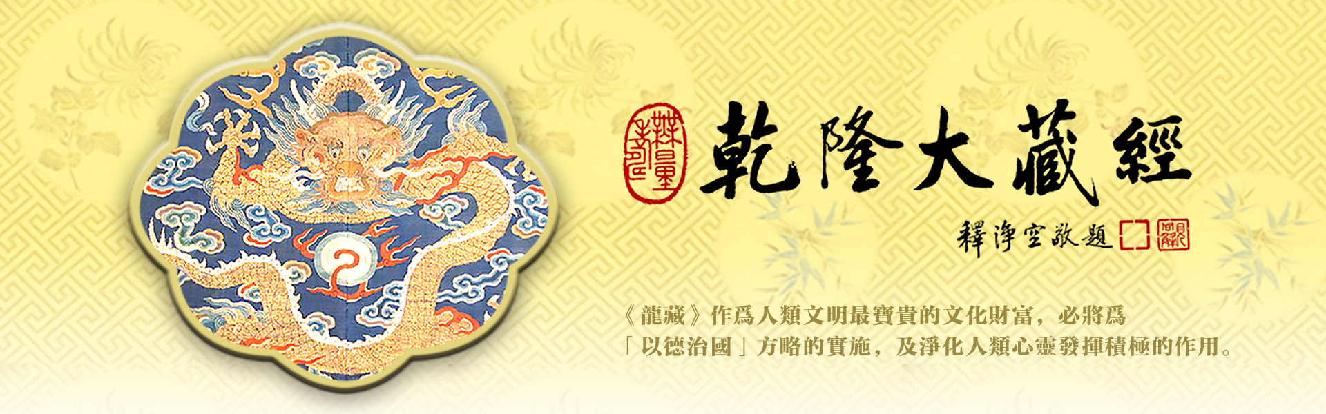 《龍藏》乃奉雍正皇帝御旨於清世宗雍正十一年(1733年)在北京賢良寺設立藏經館,和碩莊親王允祿、和碩和親王弘晝及賢良寺住持超聖法師等共同主持下,以《永樂北藏》為基礎,總輯了歷代經藏論述,於雍正十三年(1735年)正式開雕,至清高宗乾隆三年(1738年)完成,全稱為《乾隆版大藏經》。